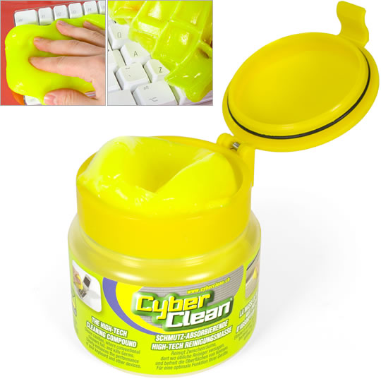 - If you want to try a quick and easy fix, check out CyberClean, a goo-like product that flows between your keys and dirt sticks to it like a magnet. It reminds me of a toy I used to play with as a kid – but cannot for the life of me remember its name.